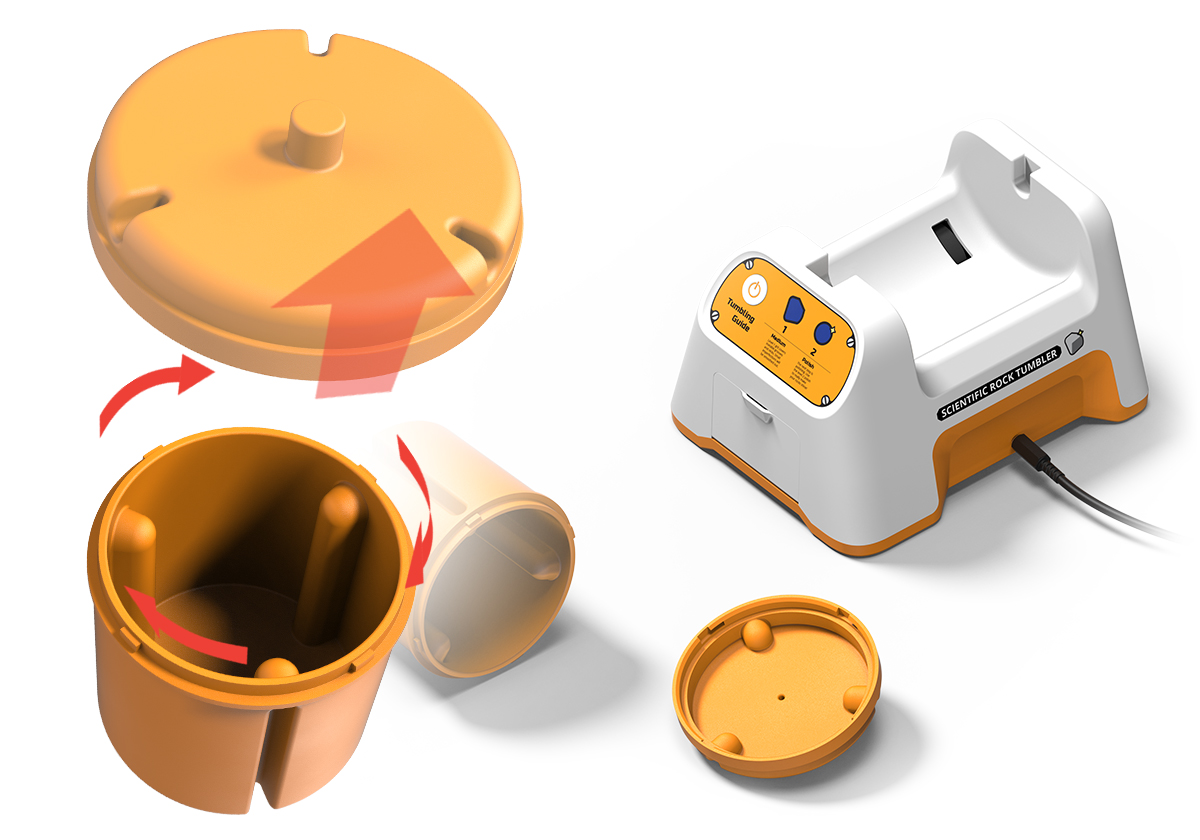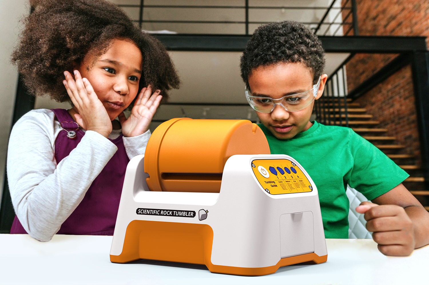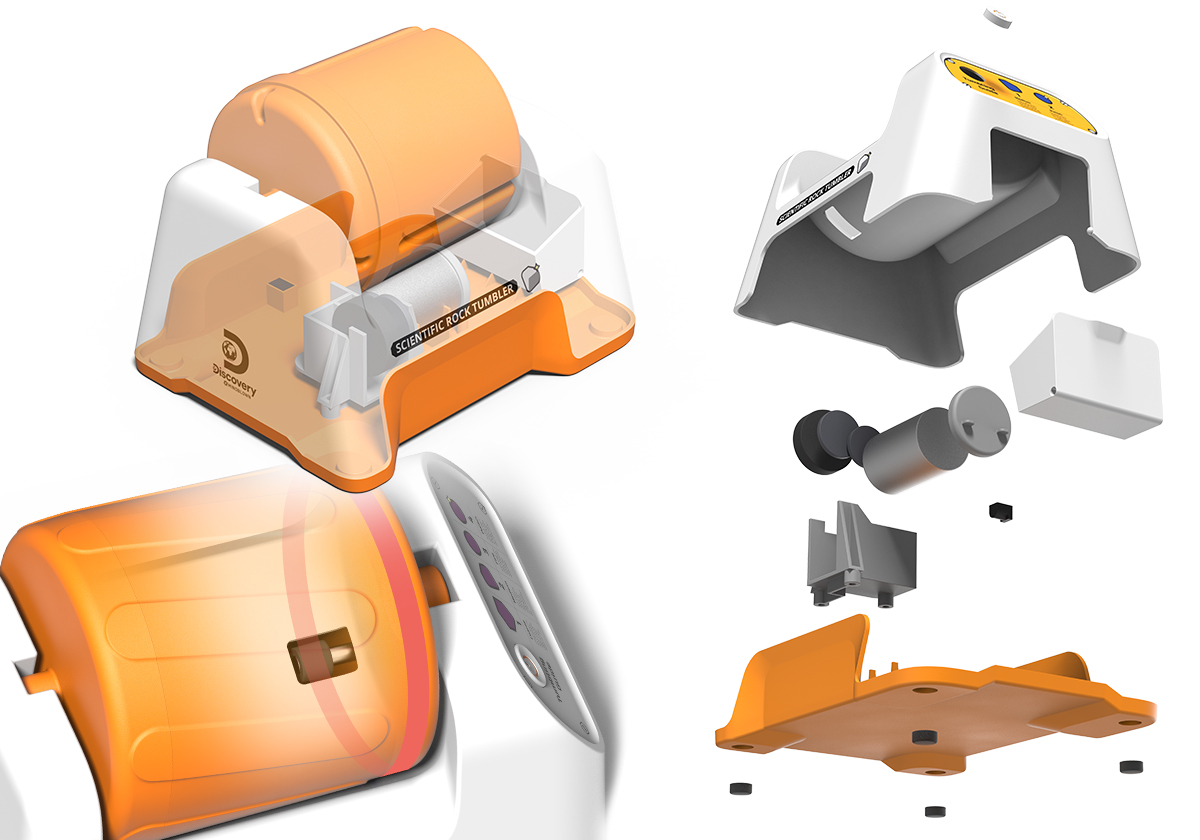 Working with the MerchSource Design Team, we designed a stylish and capable rock tumbler for Discovery Mindblown. This type of device is typically somewhat crude and mechanically simple. For our design, we added several thoughtful features to polish the experience without inflating the MSRP.